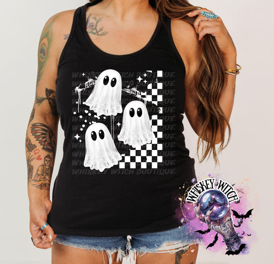 Spooky Grundge Pattern Ghost checkered TankTop | cute summer shirt | Halloween | funny summer shirt | gift | Gift idea