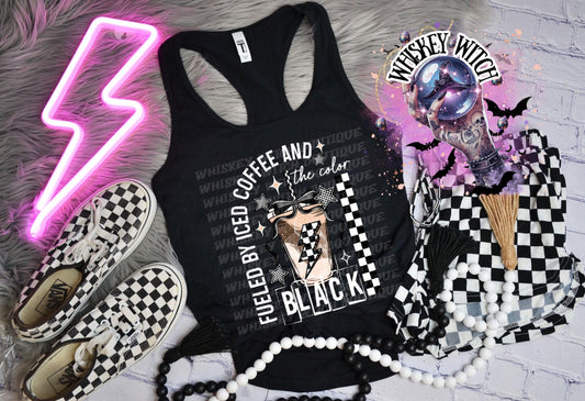 Spooky Fueled By Iced Coffee & The Color Black TankTop | cute summer shirt | Halloween | funny summer shirt | checkered