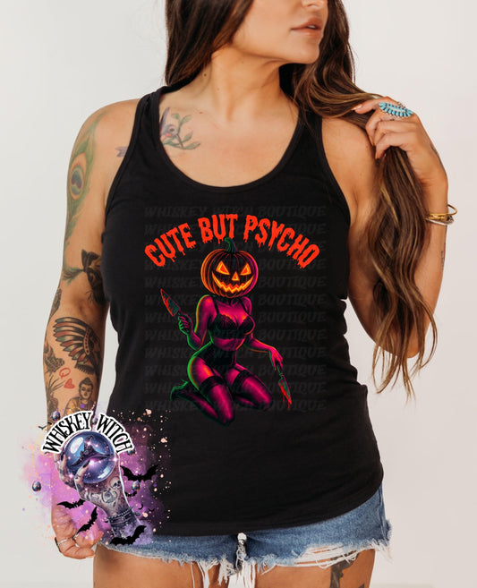 Spooky Cute But Psycho Witchy Halloween Geaphic TankTop | cute summer shirt | Spooky Season Shirt | Gift ideas for her | witchcore
