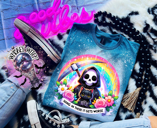Bleached Shirt Hang in there it gets worse | funny T shirt | gift | tshirt | unique gift | gift for her | snarky | sarcastic | soft tee