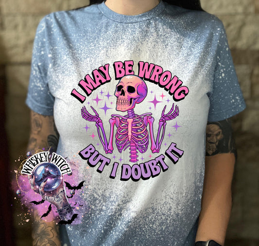 Bleached Shirt Spooky I May Be Wrong But I Doubt It Skeleton | gift | tshirt | gift for her | snarky | sarcastic | soft tee | creepy