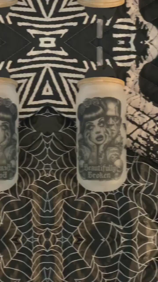Beautifully Broken Retro Vintage Horror 16oz Glass Iced Coffee Cup with Lid & Straw